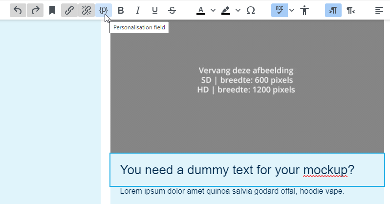 All fields in Spotler can be used, for instance “First name”. Use this field in the introduction, for instance “Dear {First name}. However, it is also possible to show other personal details, such as interests, company name, account manager, customer number, etc.