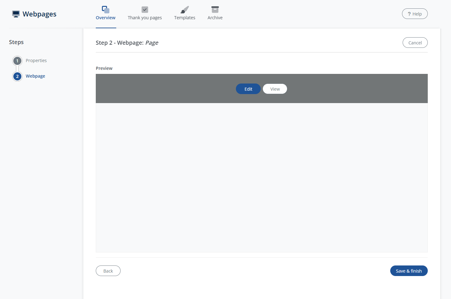 When you enter the New webpage submenu, you can specify your webpage’s properties, namely the name of your webpage.
