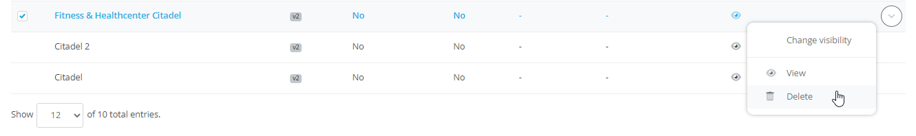 You can see whether a template is visible or not by means of the eye icon. If you see a line through the eye icon, the template is not visible. This means that when you select a template when creating a message, this template will not be shown as an option.