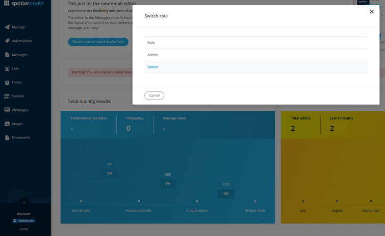 Voor gebruikers met meerdere rollen in een account hebben we het gemakkelijker gemaakt om permissies te beheren. Admin-gebruikers kunnen nu eenvoudig schakelen tussen hun rollen binnen een account, zodat ze de flexibiliteit hebben om taken uit te voeren, zoals het wijzigen van instellingen of het beheren van campagnes. Deze wijziging is vooral nuttig voor corporate- en franchisegebruikers die permissies hebben die vergelijkbaar zijn met die van accountbeheerders.