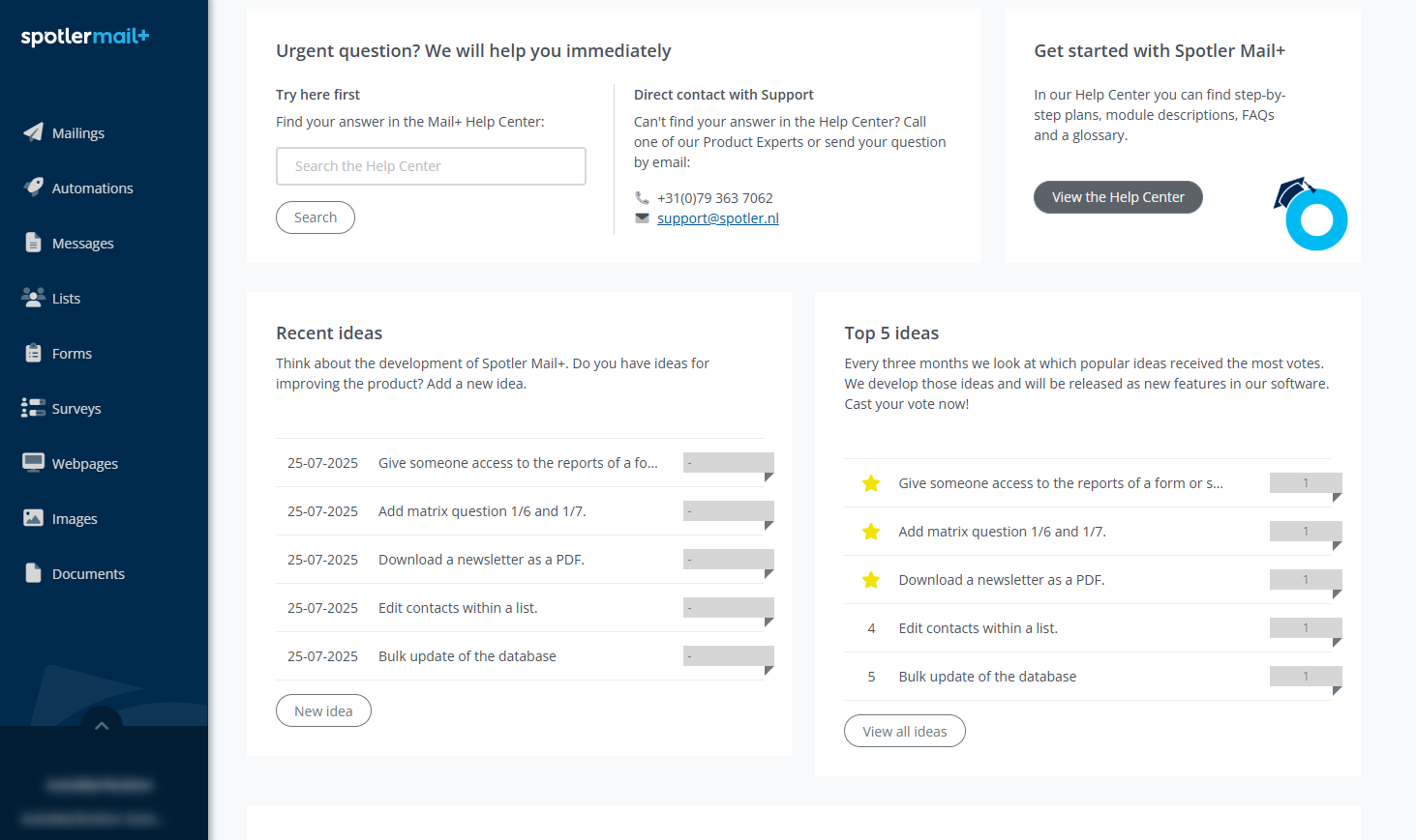 In deze release van Spotler Mail+ zijn nieuwe features toegevoegd en zijn er diverse bugfixes doorgevoerd. Twee vernieuwingen lichten we hier extra toe: het ideeënforum is nu toegankelijk voor alle gebruikers onafhankelijk van het taalprofiel en in de formuliermodule is een derde antwoordoptie toegevoegd aan de vraag Geslacht.