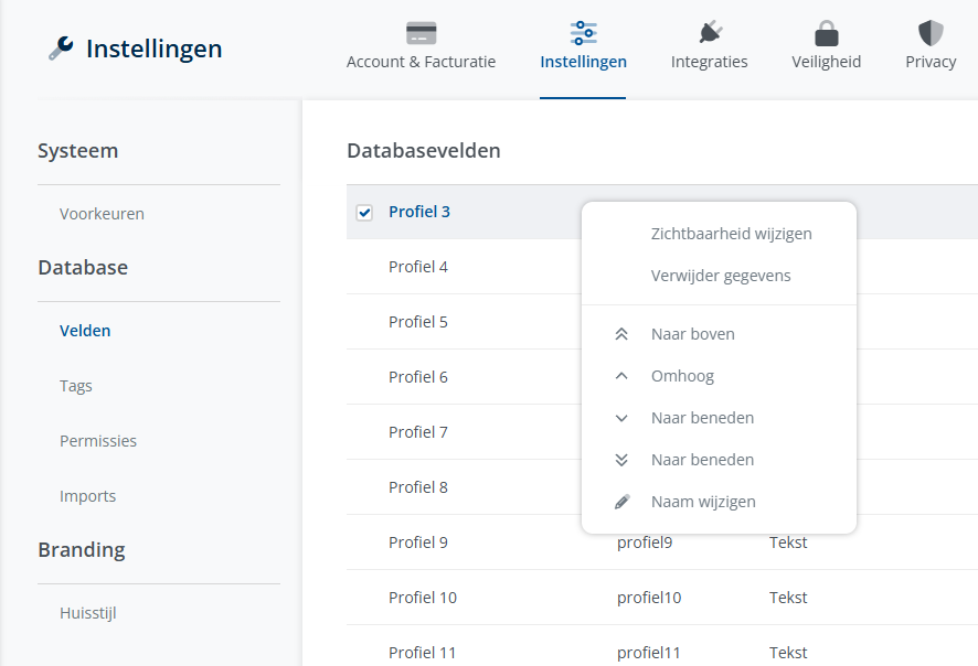 Het is vanaf nu mogelijk om data in databasevelden te verwijderen via de instellingen. Wanneer je kiest voor Verwijder gegevens, worden alle waarden voor alle contacten binnen dit databaseveld geleegd. Het databaseveld zelf blijft bestaan. Deze functionaliteit was eerder alleen beschikbaar in de oude omgeving, maar is nu volledig overgenomen in de vernieuwde omgeving.