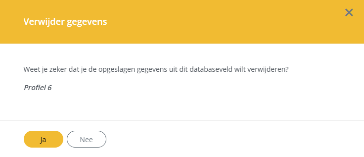 Alleen eigenaren kunnen data verwijderen. Wanneer de actie wordt uitgevoerd, opent een bevestigingscherm om te voorkomen dat data onbedoeld wordt verwijderd.