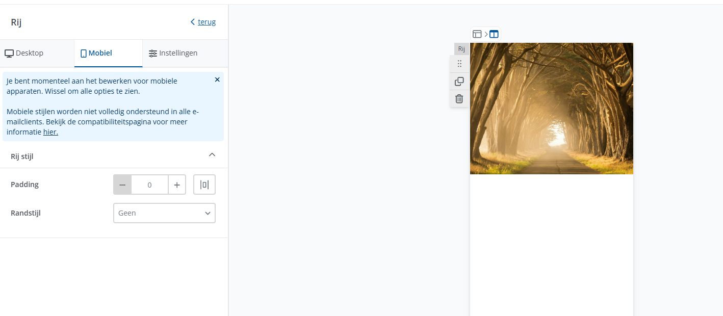 Je kunt nu borders en padding specifiek instellen voor mobiele weergave in de editor. Desktop- en mobile-styling zijn onafhankelijk van elkaar te beheren. -