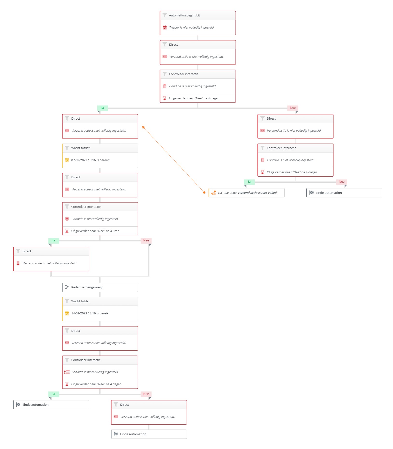 - De campagneflow staat klaar. Deze ziet er als volgt uit in de editor: